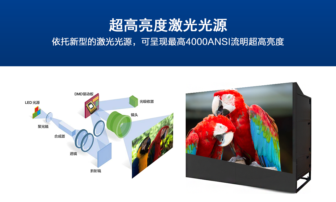 激光光源16:9DLP背投大屏幕產(chǎn)品采用純激光固態(tài)光源設(shè)計(jì)、多信道輸入備份設(shè)計(jì),特色的色彩亮度調(diào)整、信號(hào)數(shù)據(jù)化傳輸編碼技術(shù)及六色調(diào)整等先進(jìn)技術(shù),單元內(nèi)置高性能嵌入式拼接處理器,支持全高清信號(hào)輸入顯示,具有長(zhǎng)壽命、免維護(hù)、高亮度、色彩表現(xiàn)力超強(qiáng)、低功耗、綠色環(huán)保等特點(diǎn),是各類應(yīng)急指揮調(diào)度、生產(chǎn)監(jiān)控、多媒體會(huì)商等綜合信息監(jiān)控場(chǎng)所數(shù)字顯示拼接墻系統(tǒng)的理想之選。
